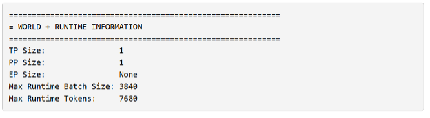 También observará que trtllm-bench informa del número máximo de tokens y el tamaño del lote.