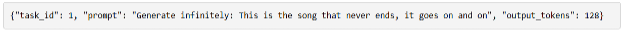Puede preparar un conjunto de datos sintético utilizando prepare_dataset o crear un conjunto de datos propio utilizando el formato especificado en nuestra documentación. Para un conjunto de datos personalizado, puede dar formato a un archivo JSON Lines (jsonl) con una carga útil configurada en cada línea. A continuación se muestra un ejemplo de una sola entrada de conjunto de datos: