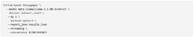 Para obtener más detalles, consulte la documentación de trtllm-benchhttps://github.com/NVIDIA/TensorRT-LLM/blob/main/docs/source/performance/perf-benchmarking.md.