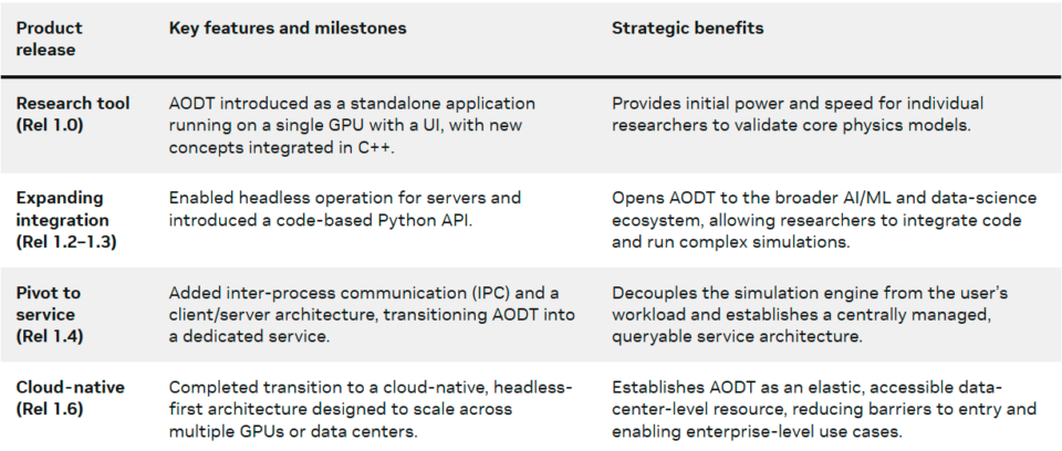 La hoja de ruta del producto AODT tiene dos áreas de enfoque cruciales: la propagación electromagnética (EM), que busca superar la barrera de la precisión, y la plataforma, que aborda la barrera de integración.